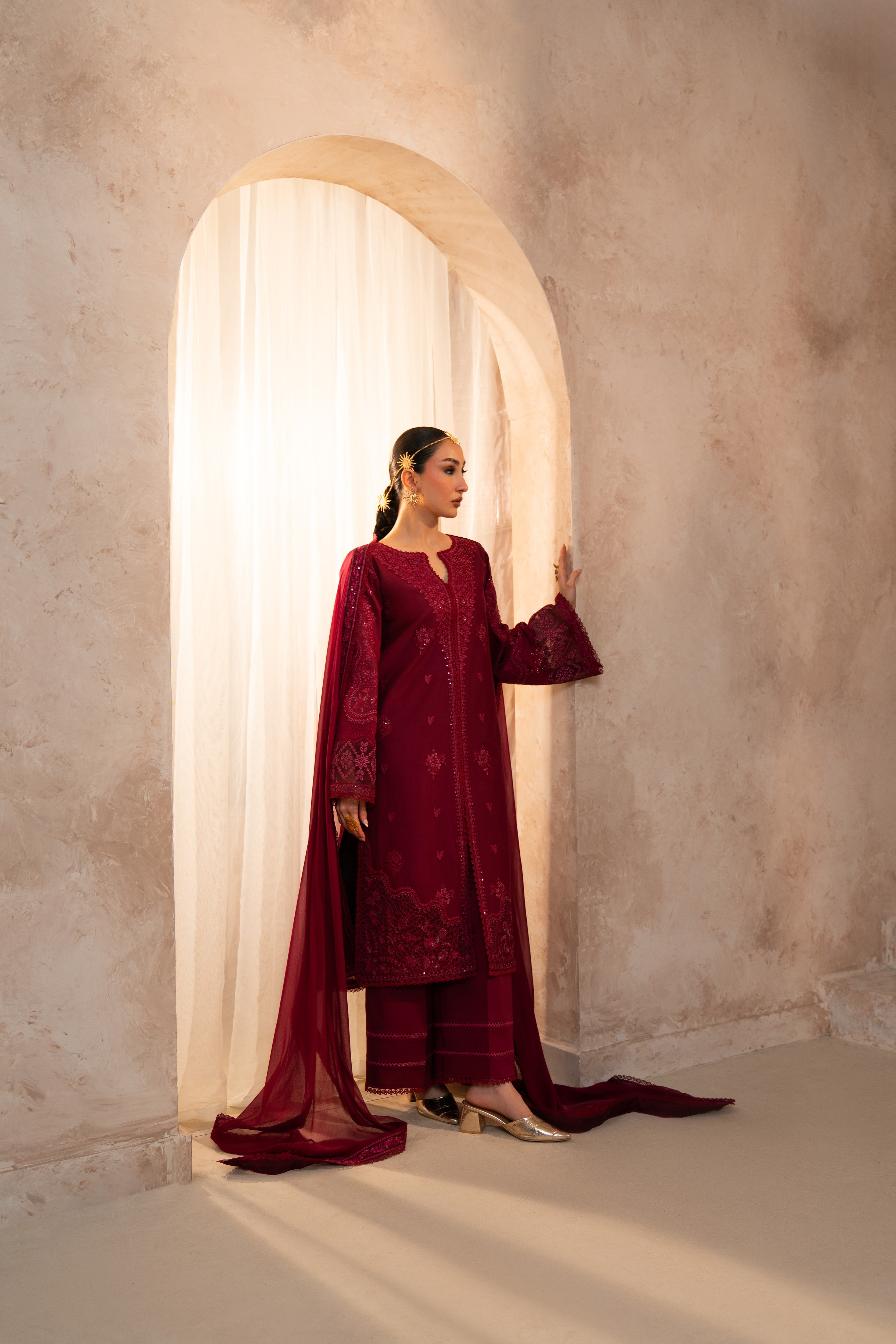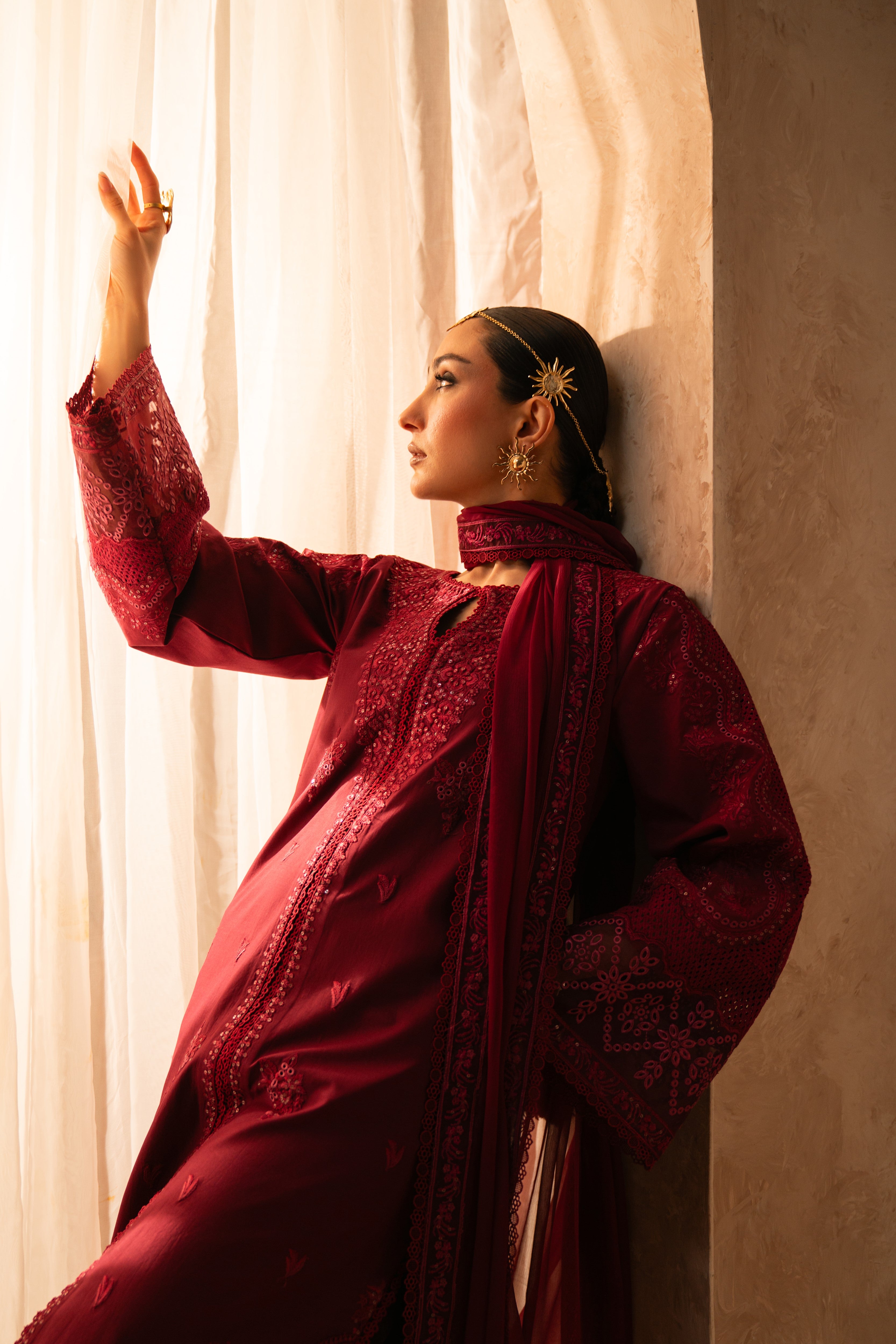 • Dupatta finished with four-sided embroidered patti for refined border detailing